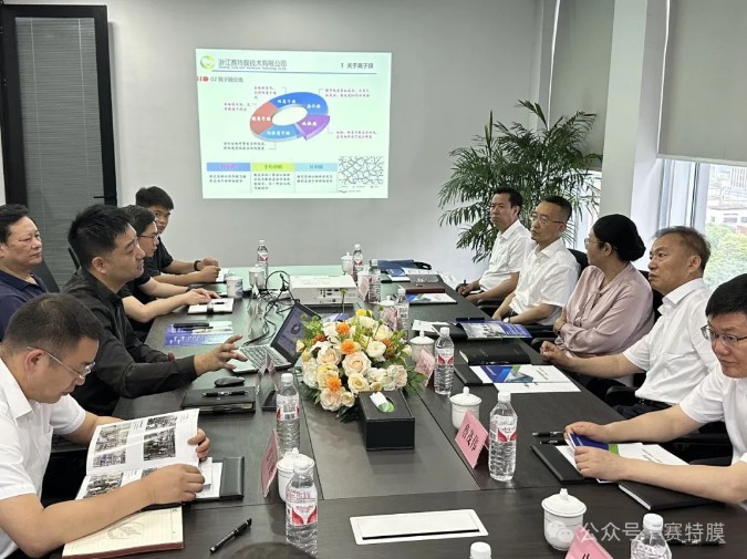 2024年5月27日上午,海西州州委領導在海西州州委書記竺向東和海西州州長喬亞群的帶領下來到浙江賽特膜進行了參觀和探討交流。